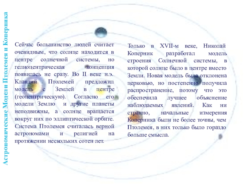 Только в XVII-м веке, Николай Коперник разработал модель строения Солнечной системы, в которой солнце было в центре вместо Земли. Новая модель была отклонена церковью, но постепенно получила распространение, потому что это обеспечила лучшее объяснение наблюдаемых явлений. Как ни странно, начальные измерения Коперника были не более точны, чем Птолемея, в них только было гораздо больше смысла.