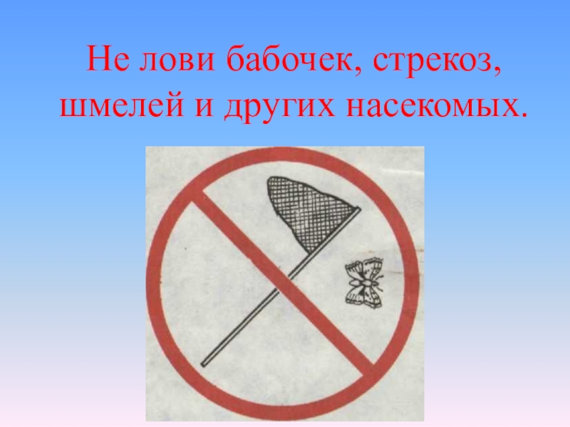 Слайд 59Не лови бабочек, стрекоз, шмелей и других насекомых.