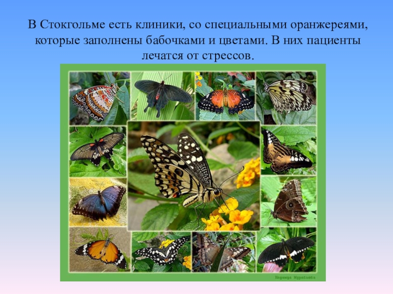 Слайд 34В Стокгольме есть клиники, со специальными оранжереями, которые заполнены бабочками и