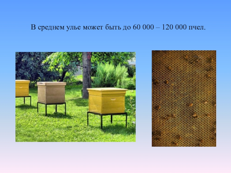 Слайд 47В среднем улье может быть до 60 000 – 120 000