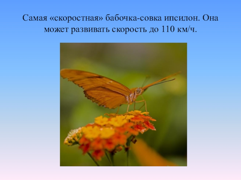 Слайд 29Самая «скоростная» бабочка-совка ипсилон. Она может развивать скорость до 110 км/ч.