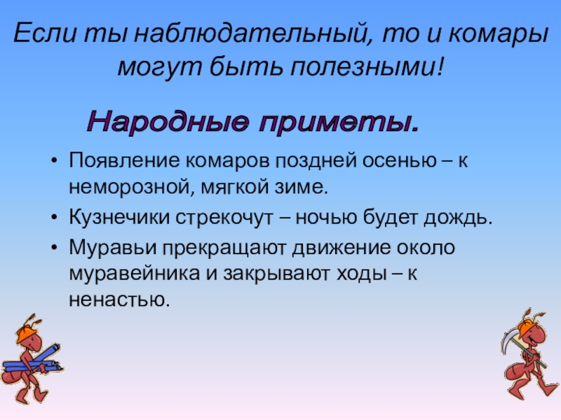 Слайд 22Если ты наблюдательный, то и комары могут быть полезными!