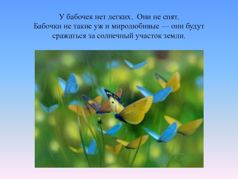 Слайд 33У бабочек нет легких. Они не спят.