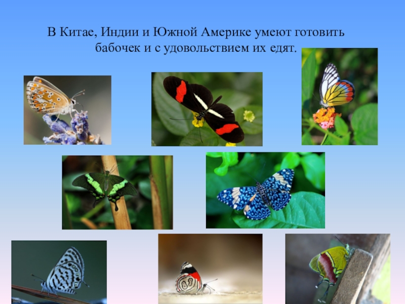 Слайд 35В Китае, Индии и Южной Америке умеют готовить бабочек и с