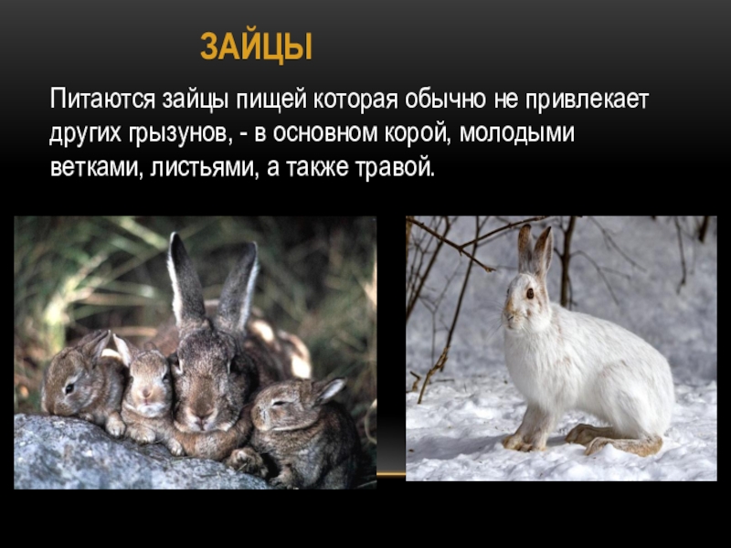 ЗАЙЦЫ Питаются зайцы пищей которая обычно не привлекает