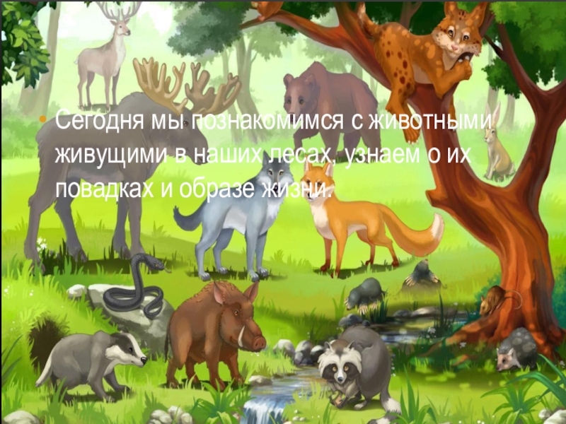 Слайд 2Сегодня мы познакомимся с животными живущими в наших лесах, узнаем о