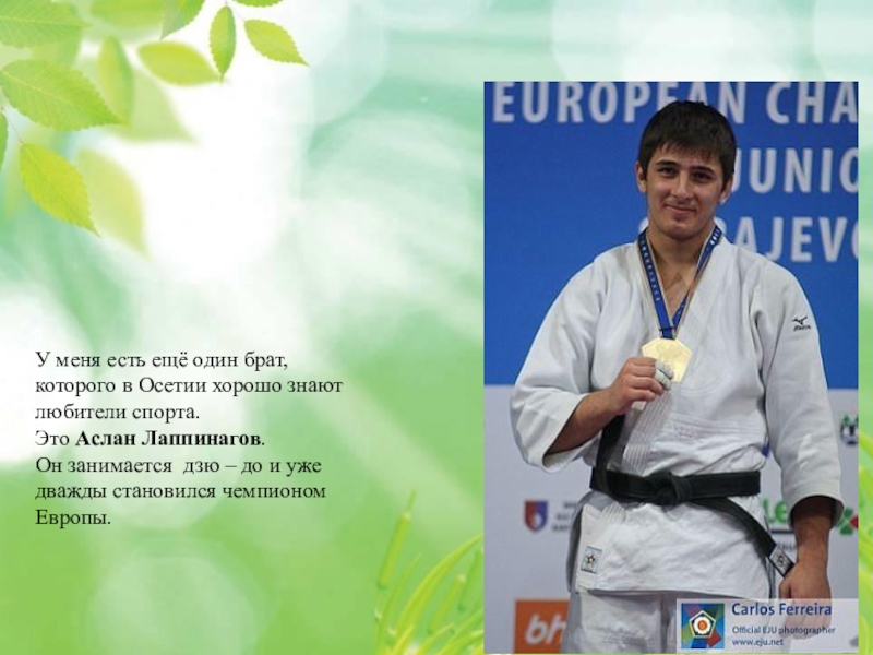 Он занимается дзю – до и уже дважды становился чемпионом Европы.