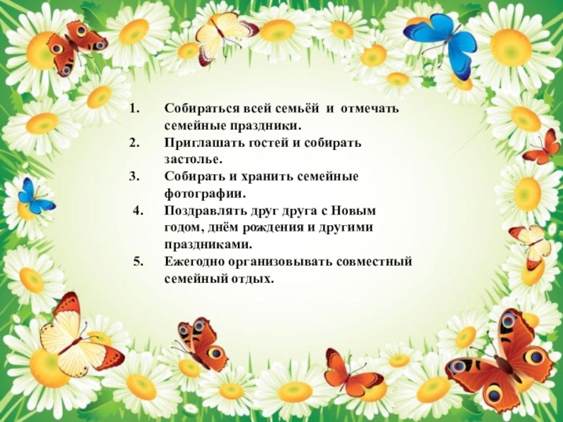 Слайд 23Собираться всей семьёй и отмечать семейные праздники.