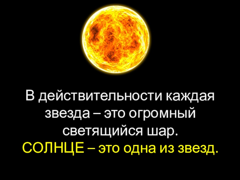 Слайд 6В действительности каждая звезда – это огромный светящийся шар. СОЛНЦЕ – это