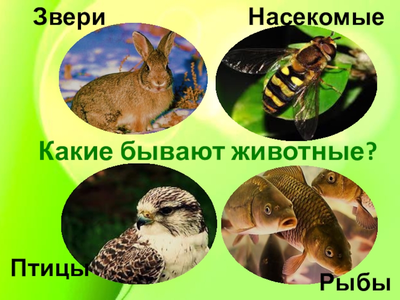 Какие бывают животные? Звери Рыбы Птицы Насекомые