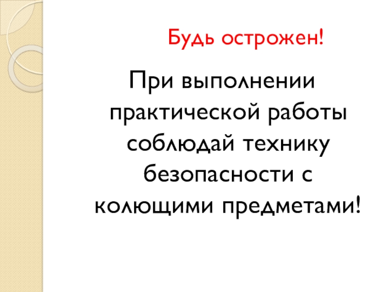 Будь острожен!При выполнении практической работы соблюдай технику безопасности с