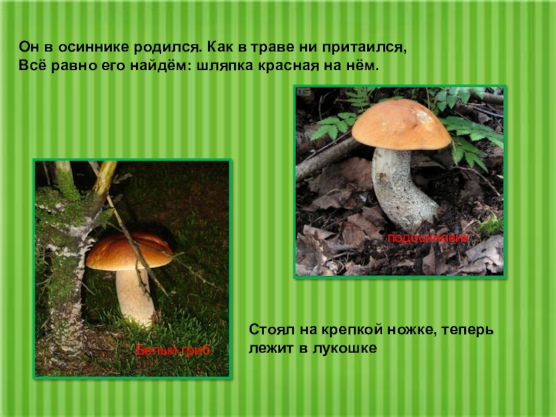 Стоял на крепкой ножке, теперь лежит в лукошке