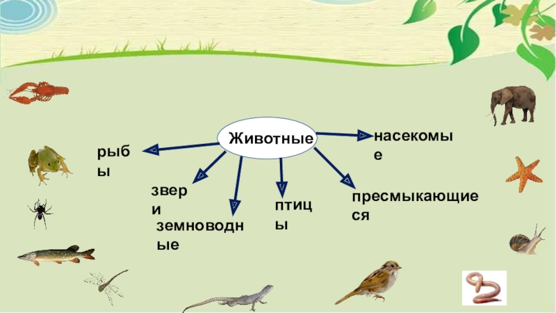 Животныенасекомыепресмыкающиесярыбыптицызвериземноводные