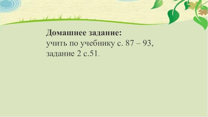 Домашнее задание:учить по учебнику с. 87 – 93, задание 2 с.51.