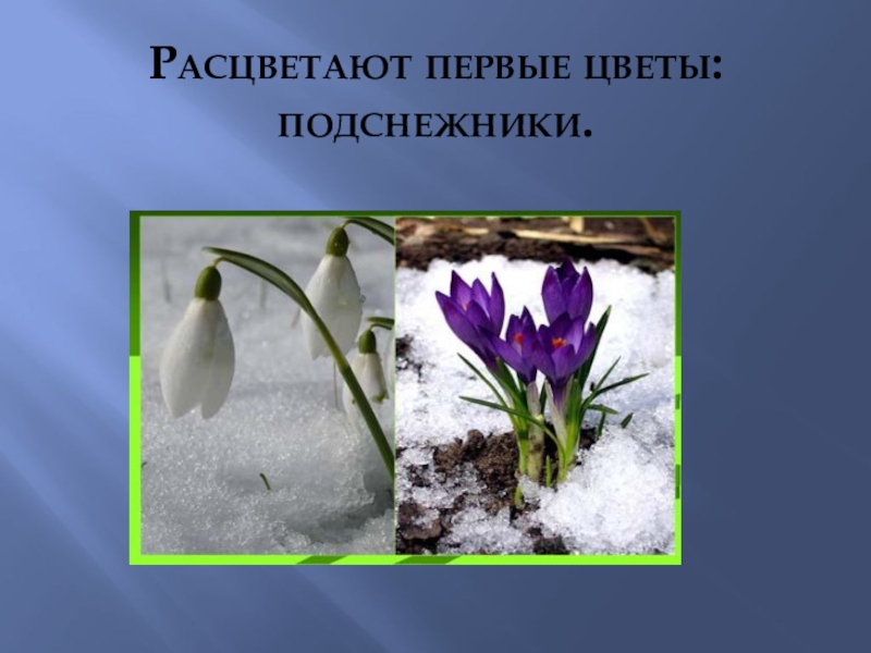 Слайд 6Расцветают первые цветы: подснежники.