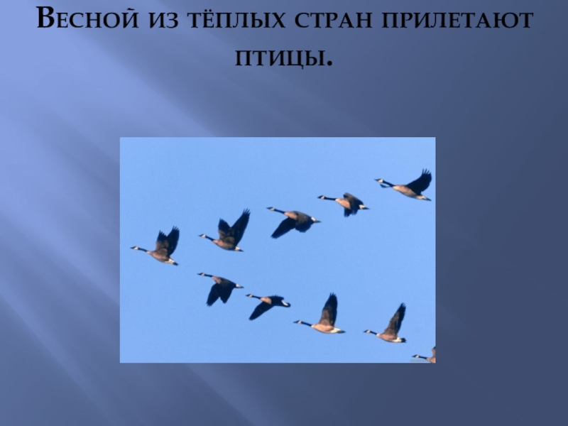 Слайд 8Весной из тёплых стран прилетают птицы.