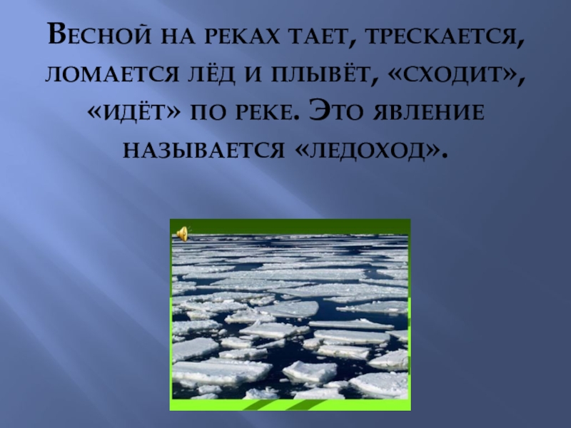 Весной на реках тает, трескается, ломается лёд и плывёт, «сходит», «идёт» по реке. Это явление называется «ледоход».