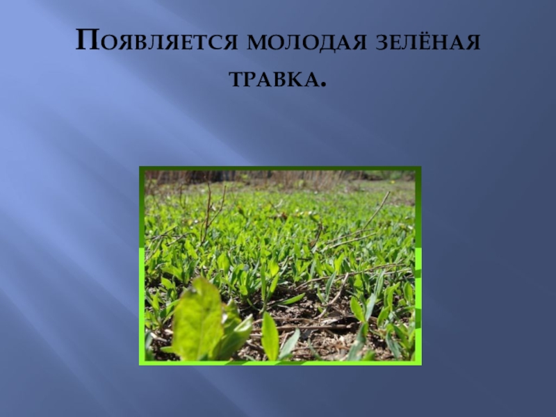 Слайд 5Появляется молодая зелёная травка.