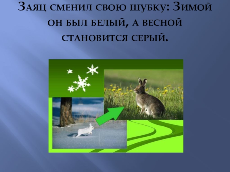 Слайд 11Заяц сменил свою шубку: Зимой он был белый, а весной становится
