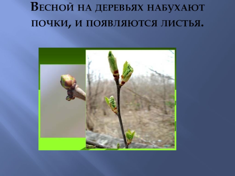 Слайд 7Весной на деревьях набухают почки, и появляются листья.