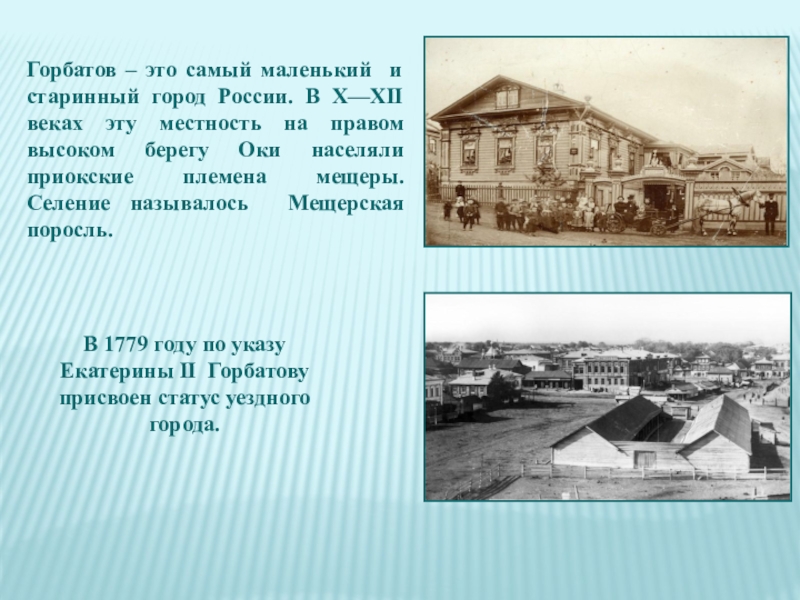 В 1779 году по указу Екатерины II Горбатову присвоен статус уездного города.