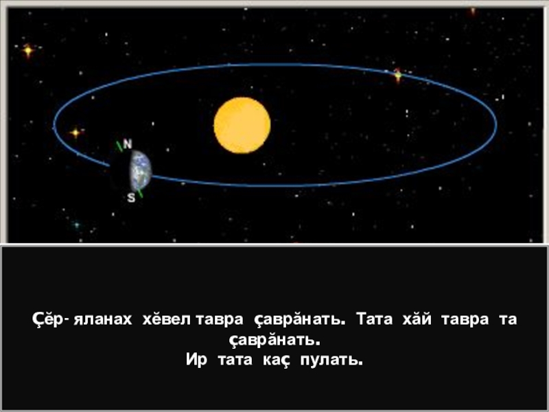 Çĕр- яланах хĕвел тавра çаврăнать. Тата хăй тавра та çаврăнать. Ир тата каç пулать.