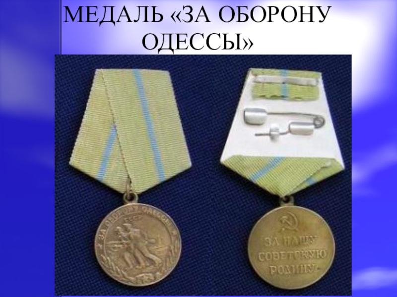 Слайд 8МЕДАЛЬ «ЗА ОБОРОНУ ОДЕССЫ»
