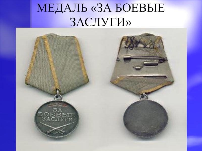 Слайд 5МЕДАЛЬ «ЗА БОЕВЫЕ ЗАСЛУГИ»