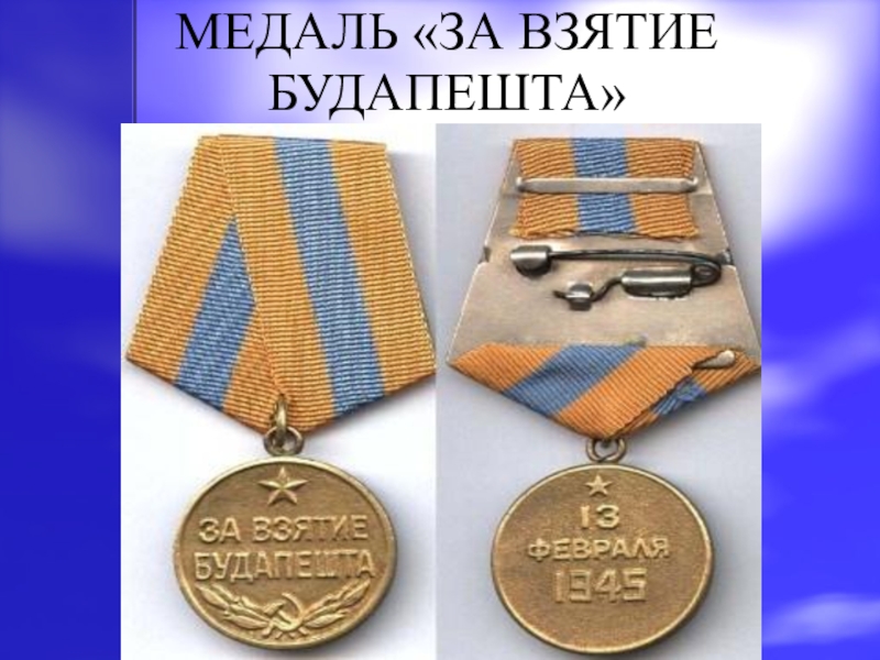 Слайд 19МЕДАЛЬ «ЗА ВЗЯТИЕ БУДАПЕШТА»