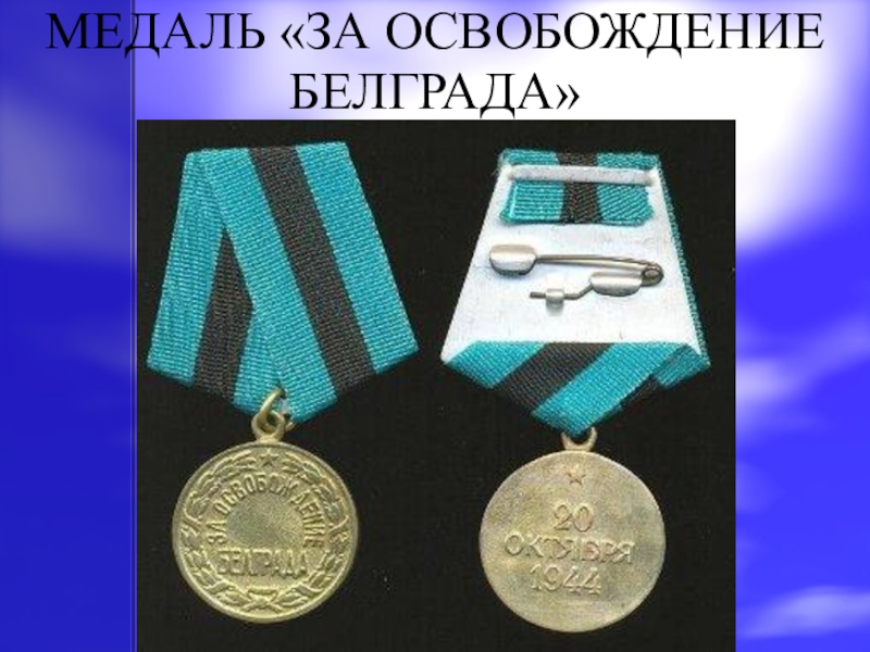 Слайд 15МЕДАЛЬ «ЗА ОСВОБОЖДЕНИЕ БЕЛГРАДА»