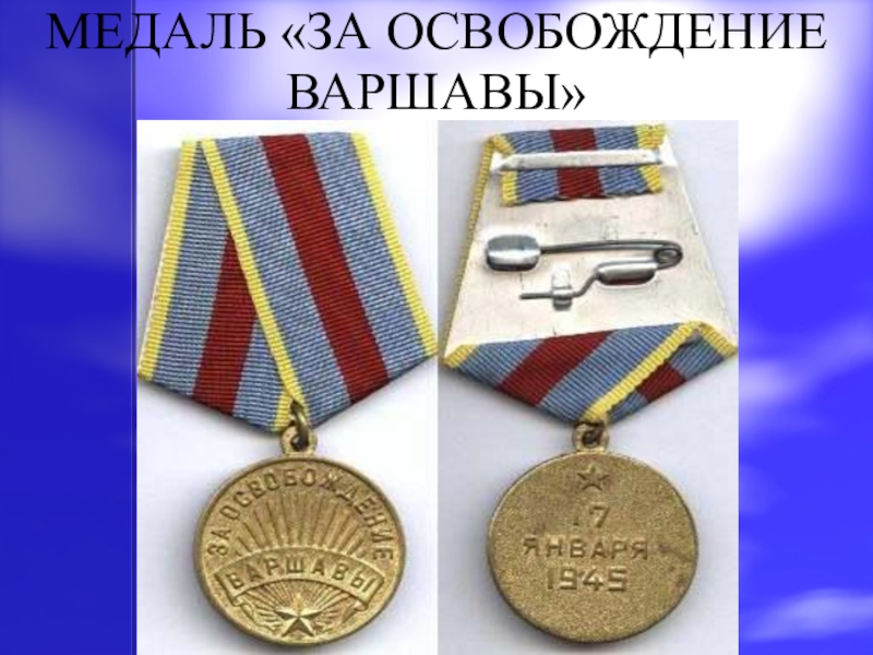 Слайд 16МЕДАЛЬ «ЗА ОСВОБОЖДЕНИЕ ВАРШАВЫ»