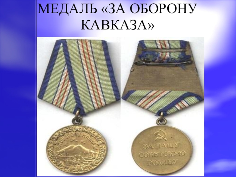 Слайд 11МЕДАЛЬ «ЗА ОБОРОНУ КАВКАЗА»