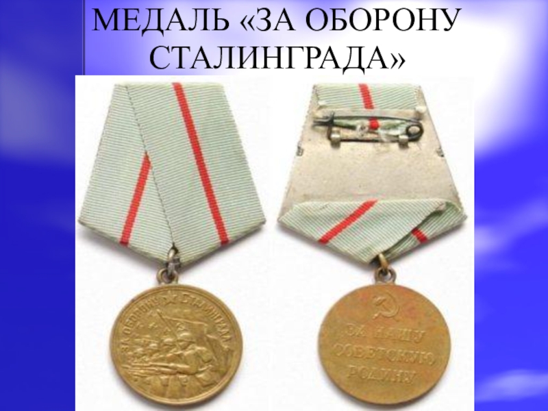 Слайд 10МЕДАЛЬ «ЗА ОБОРОНУ СТАЛИНГРАДА»