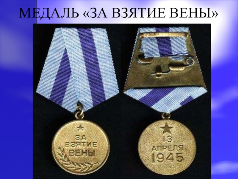 Слайд 20МЕДАЛЬ «ЗА ВЗЯТИЕ ВЕНЫ»