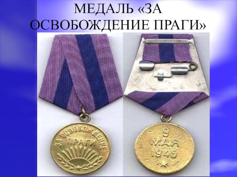 Слайд 17МЕДАЛЬ «ЗА ОСВОБОЖДЕНИЕ ПРАГИ»