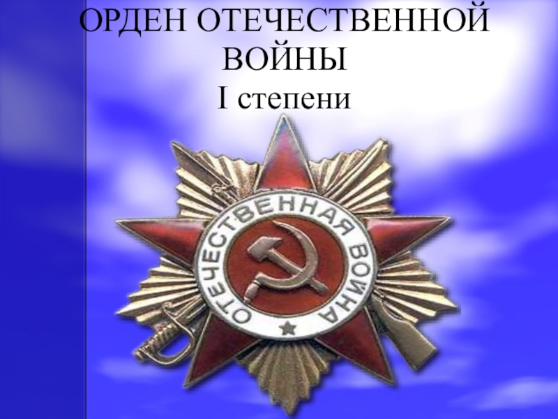 Слайд 31ОРДЕН ОТЕЧЕСТВЕННОЙ ВОЙНЫ I степени