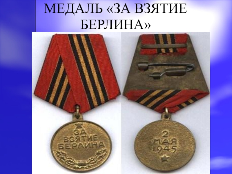 Слайд 18МЕДАЛЬ «ЗА ВЗЯТИЕ БЕРЛИНА»