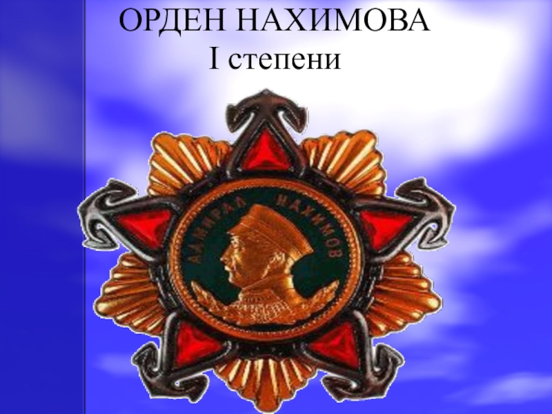 Слайд 44ОРДЕН НАХИМОВА I степени