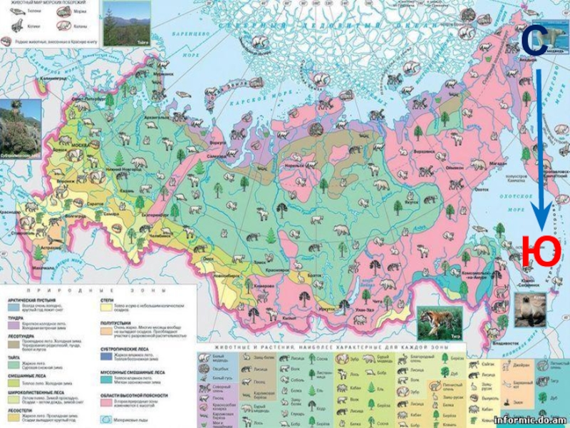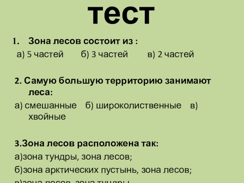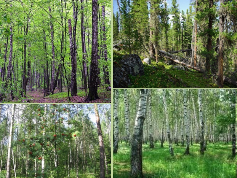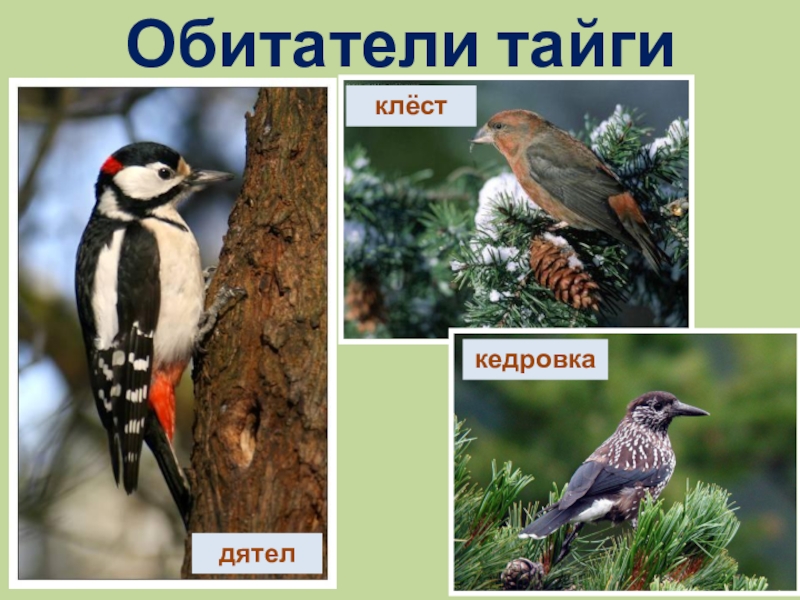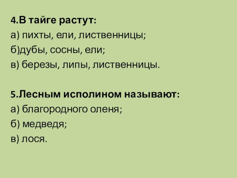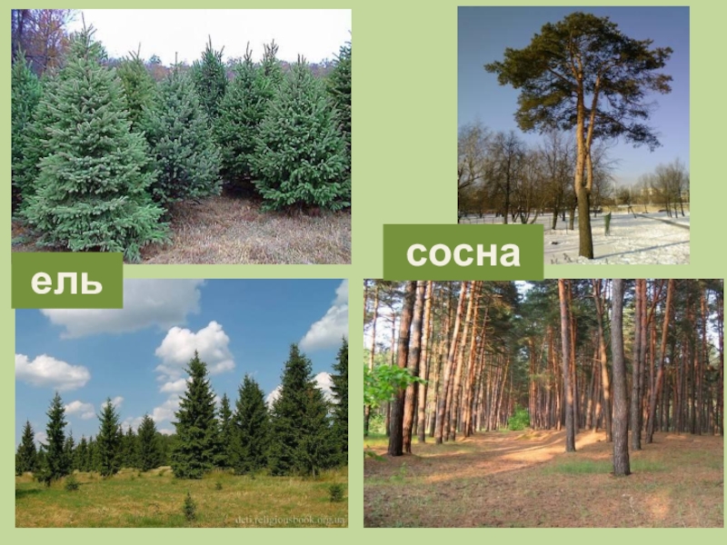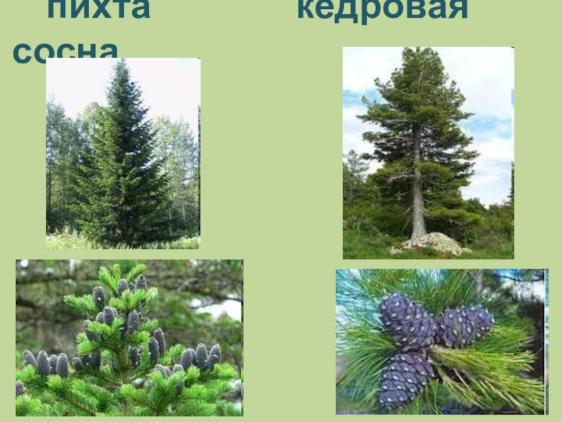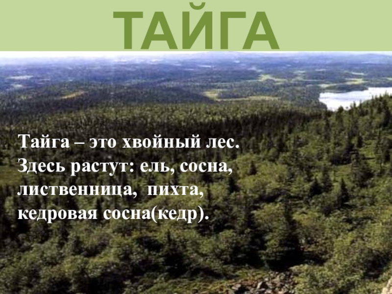 Тайга – это хвойный лес. Здесь растут: ель, сосна, лиственница, пихта,