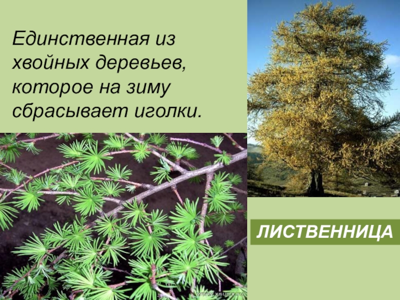 Единственная из хвойных деревьев, которое на зиму сбрасывает иголки.