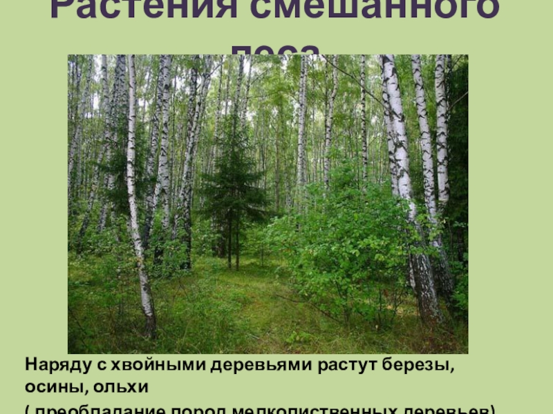 Наряду с хвойными деревьями растут березы, осины, ольхи