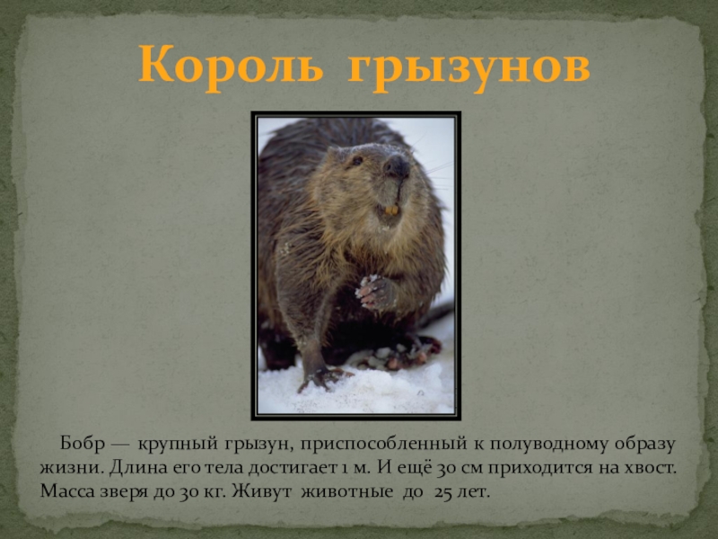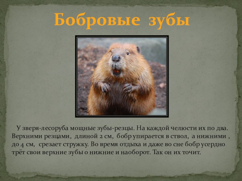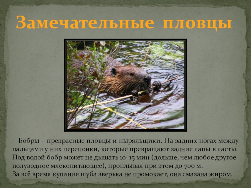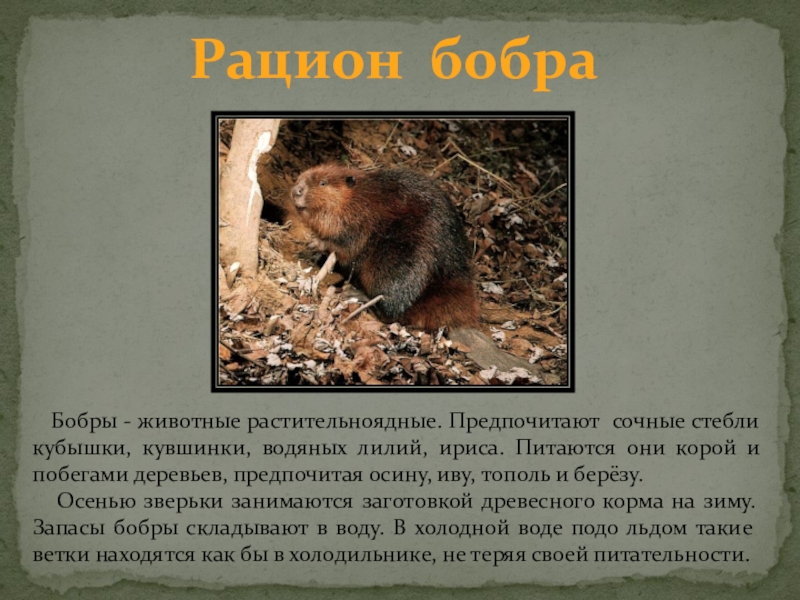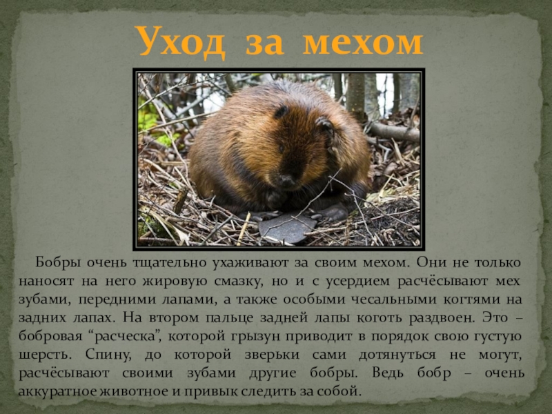 1. Хвост служит бобру стулом - подгрызая дерево, бобр упирается в ствол передними ногами, а сидит на задних и на хвосте.