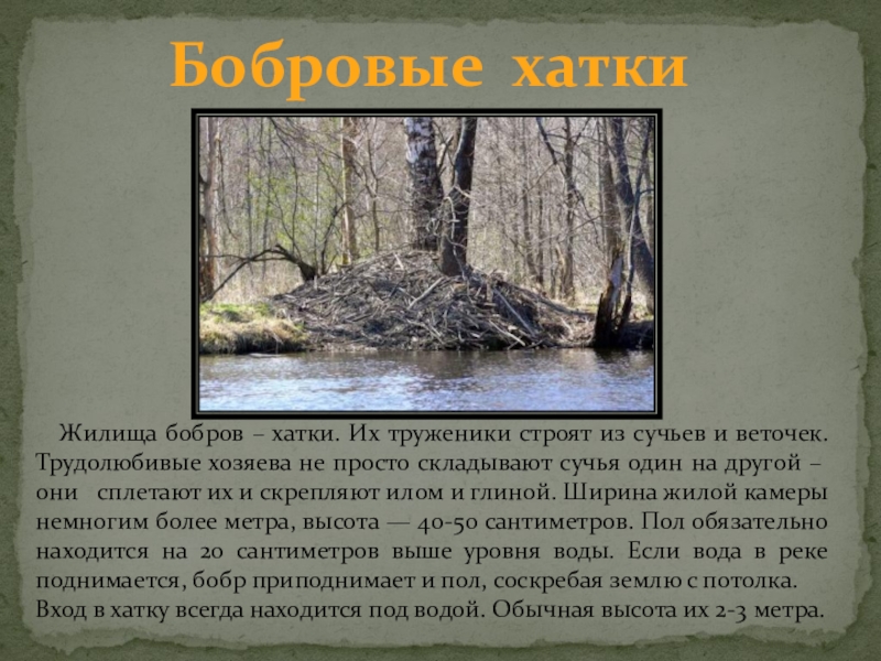 3. Это и сигнальное приспособление - во время опасности бобры хлопают хвостом по воде, как бы предупреждая этим хлопком остальных.