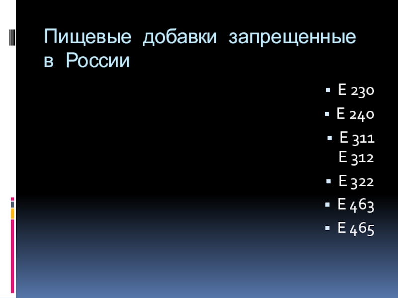Пищевые добавки запрещенные в РоссииЕ 230Е 240Е 311 Е 312Е 322Е 463Е 465