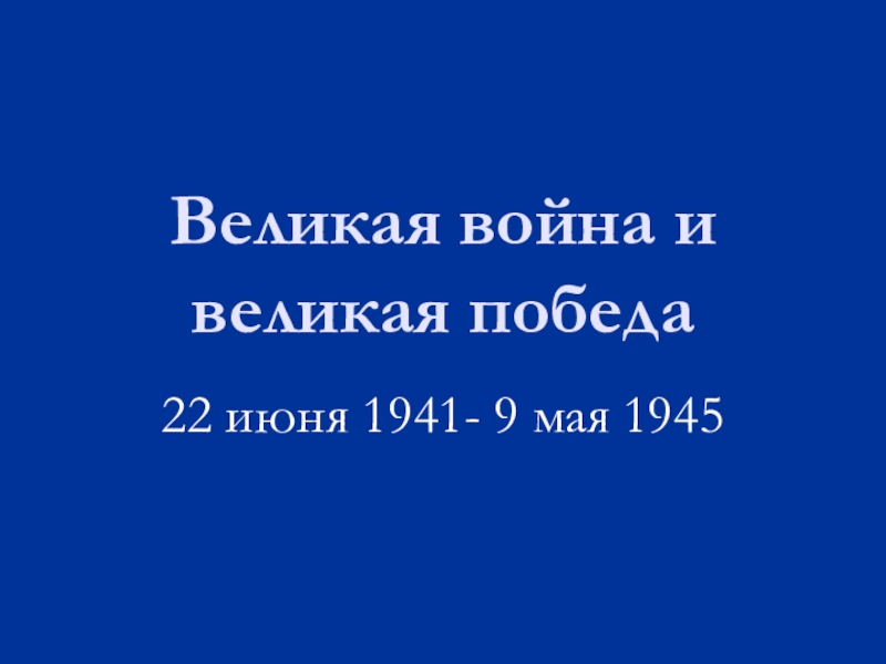 Великая война и великая победа22 июня 1941- 9 мая 1945