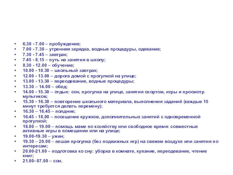 20.00-21.00 – подготовка ко сну: уборка в комнате, купание, переодевание, чтение книг;