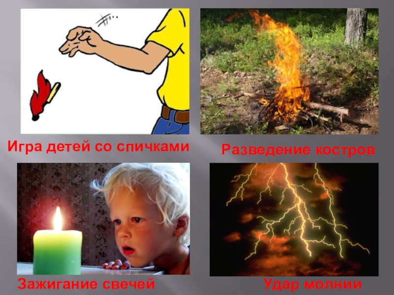Игра детей со спичкамиРазведение костров Зажигание свечейУдар молнии
