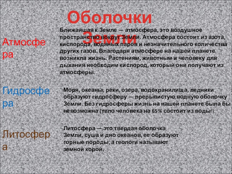 Литосфера — это твердая оболочка Земли, суша и дно океанов, ее образуют горные породы, а геологи называют земной корой.