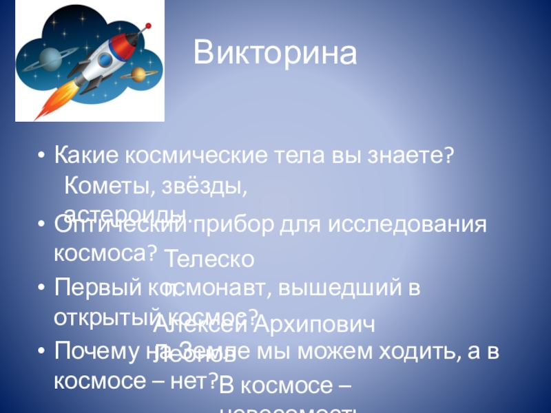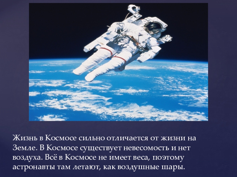 В космосе – невесомость.