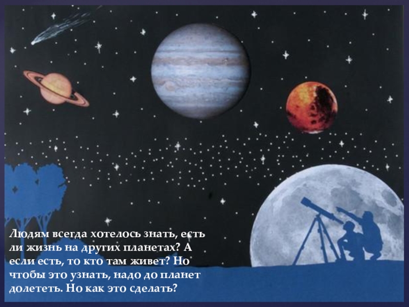 Людям всегда хотелось знать, есть ли жизнь на других планетах? А если есть, то кто там живет? Но чтобы это узнать, надо до планет долететь. Но как это сделать?